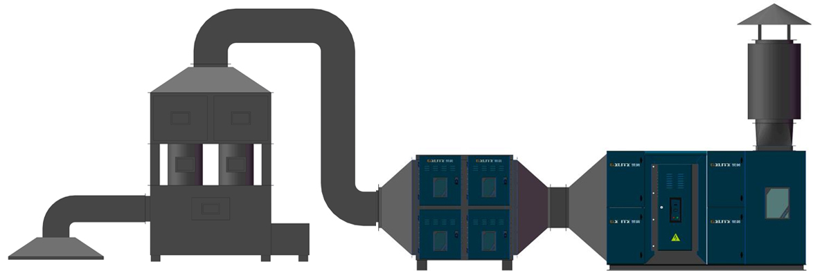 前端收集 旋流塔降溫除塵 工業(yè)靜電除油霧 UV光催化凈化