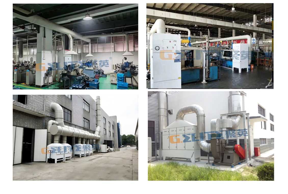 多工位集中油霧凈化治理適用于機(jī)床數(shù)量規(guī)模較大,或者多臺(tái)、多種類型開放式機(jī)床,通過吸氣罩或吸氣臂形式收集油霧氣體,并且有條件設(shè)置排氣筒的情況,前端收集油霧氣體,通過管道集中輸送到凈化主機(jī)中過濾凈化后,通過風(fēng)機(jī)和煙囪潔凈空氣排入大氣