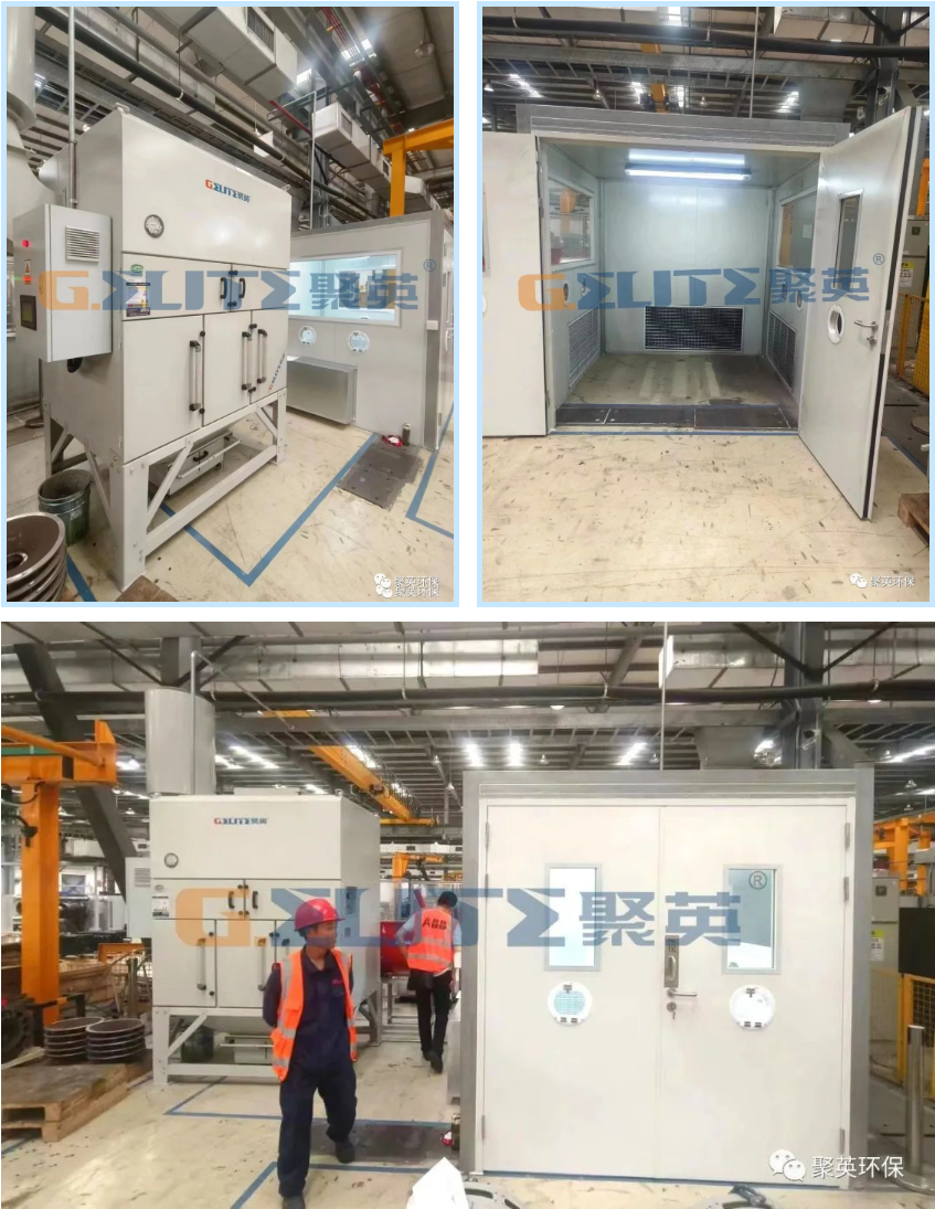 根據(jù)業(yè)主的要求需創(chuàng)建智能化、綠色環(huán)保車間,對工件的自動化打磨工作房進行負壓運行,同時打磨房內(nèi)的粉塵經(jīng)密閉抽吸收集后,通過管道進入高效粉塵凈化裝置,納米級金屬粉塵經(jīng)除塵裝置處理后排入管道煙囪。經(jīng)處理后的粉塵顆粒污染物排放指標需滿足環(huán)保要求,同時也達到職業(yè)衛(wèi)生排放標準。