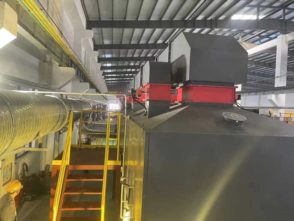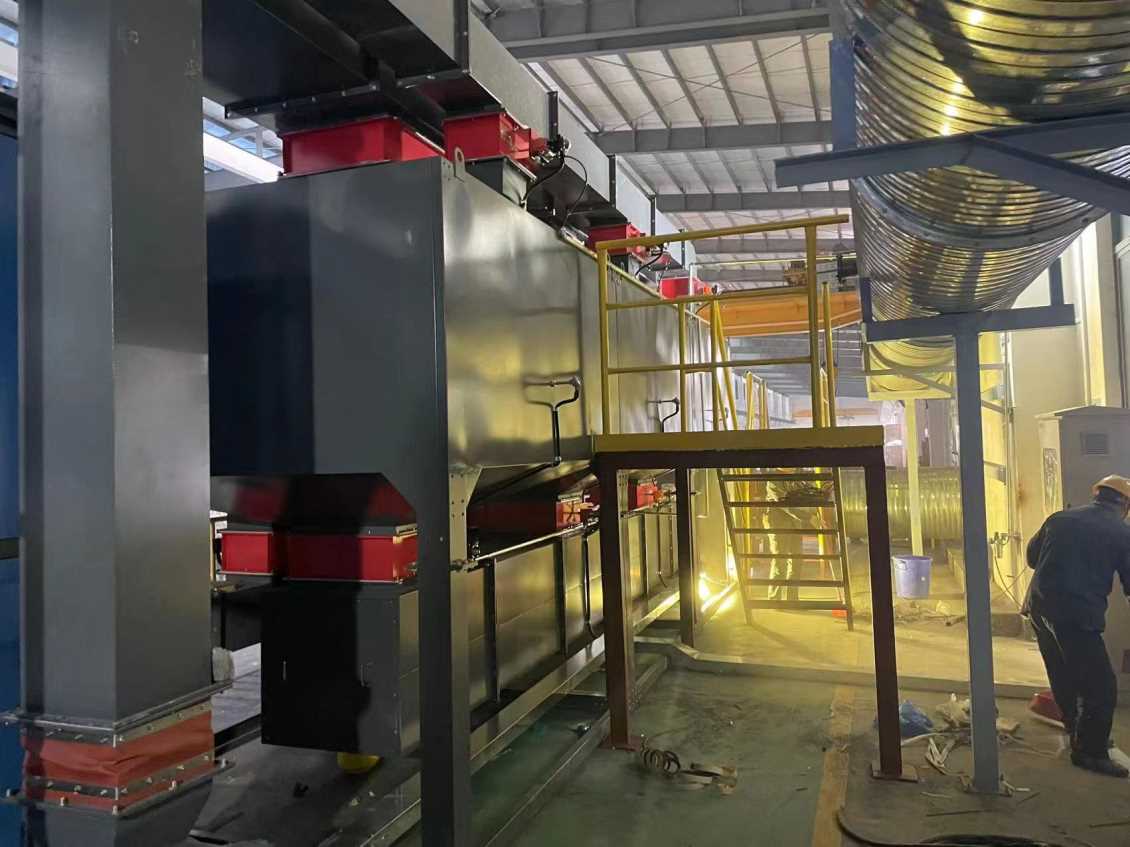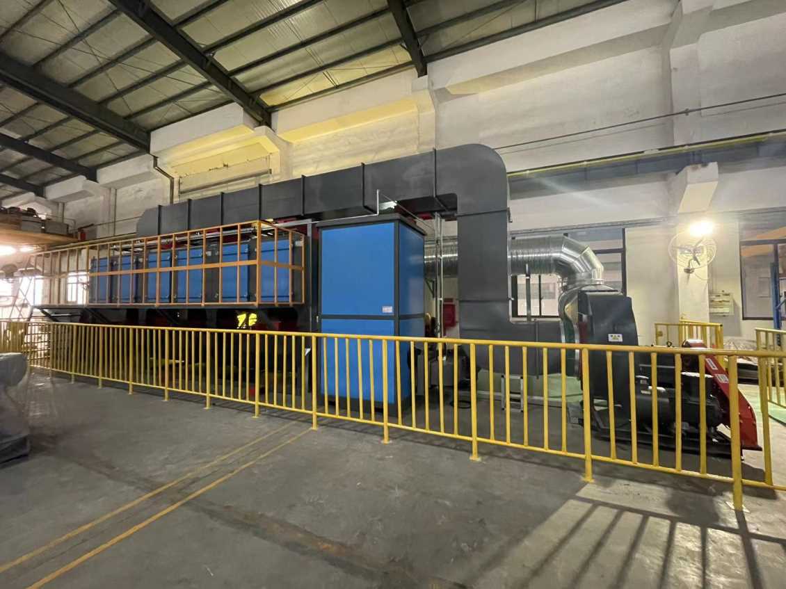 移動伸縮房 → 干式漆霧凈化墻 → 管路收集 → 干式過濾 → 活性炭吸附脫附催化燃燒設備→風機 → 達標排放